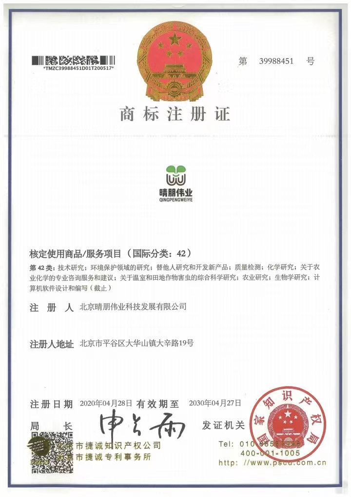 北京晴朋伟业科技发展有限公司,注册地址在北京市平谷区大华山镇。公司于2014年与日本农业技术专家本多亨先生合作成立公司(中外合资),引进日本现代农业技术产品,就中国的土壤板结问题研发出一款土壤调理剂产品。