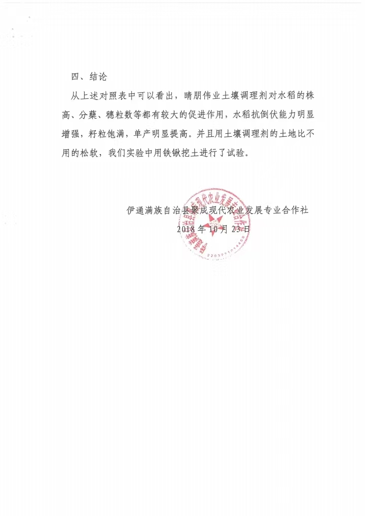 晴朋伟业研发生产的土壤调理剂,经过多年的产品试验结果证实了该产品的安全性、有效性、实用性!产品现在已经申报国家发明专利。